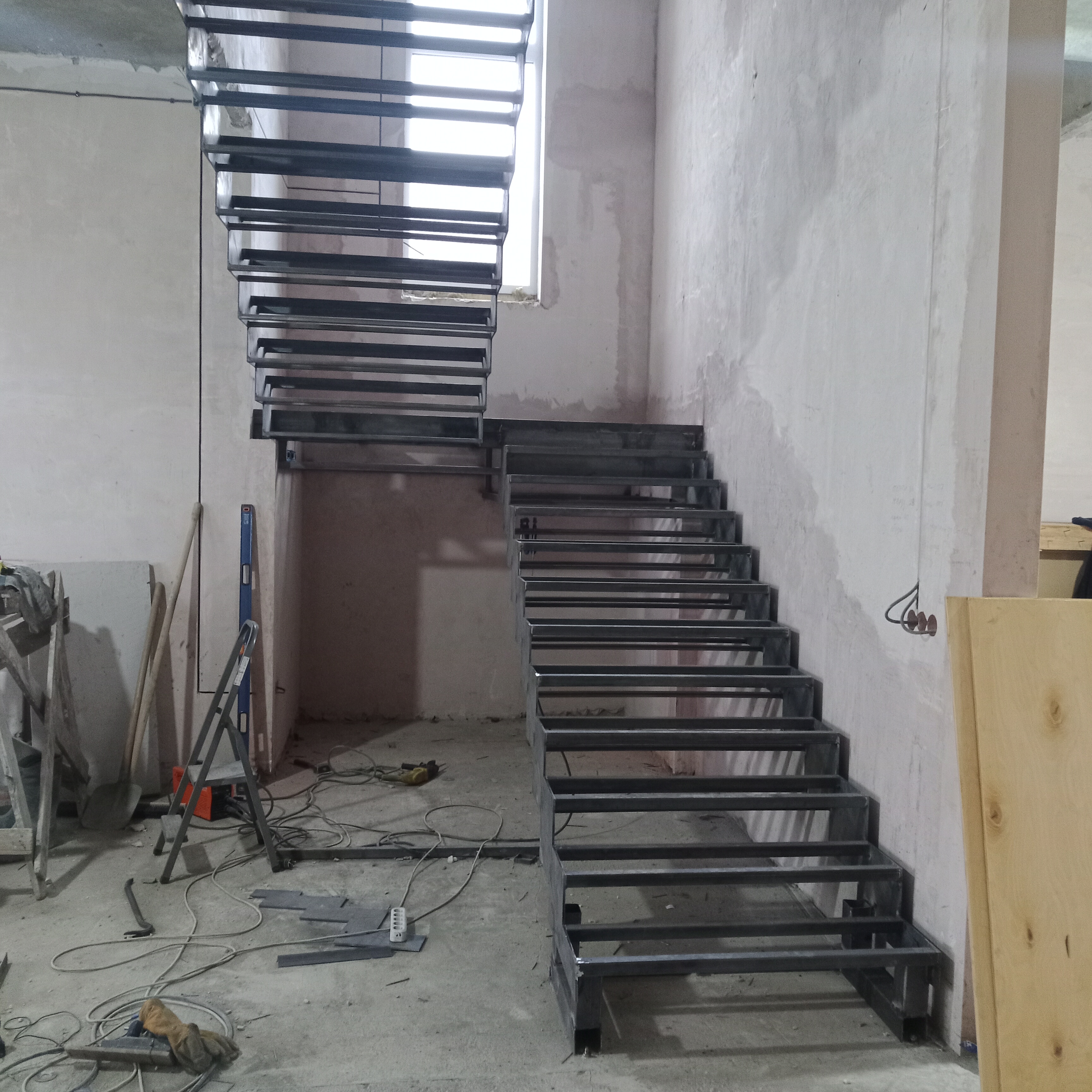 Одним из самых распространенных видов выпускаемых нами лестниц является черновой металлокаркас лестницы, который можно установить на любой стадии строительства Вашего дома.
