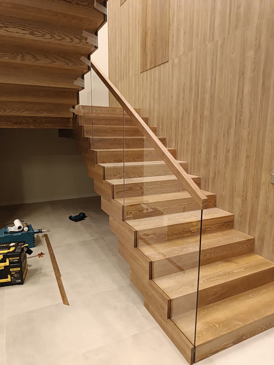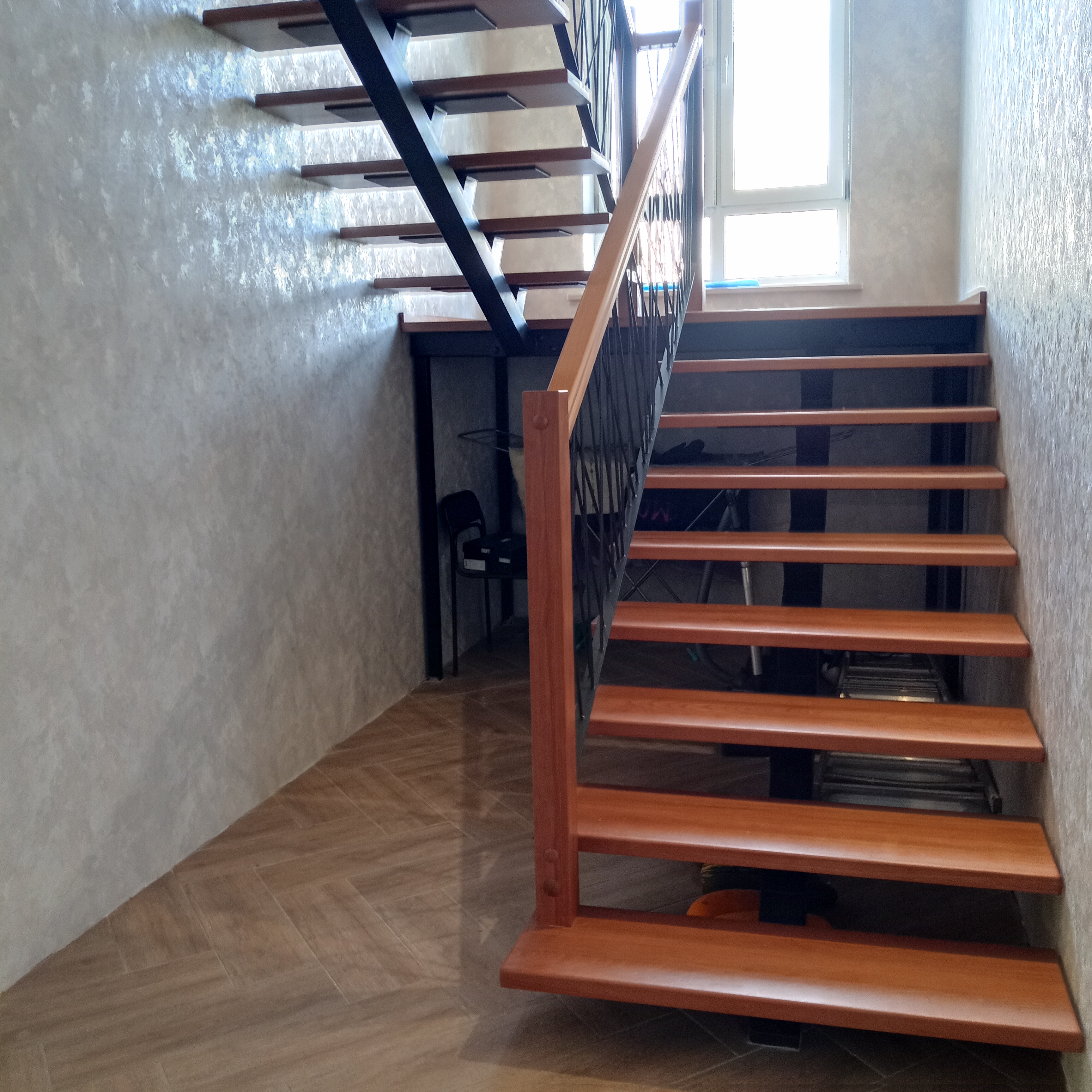 Установите металлический каркас Вашей лестницы уже сейчас, а обшивку деревом закажите после окончания отделочных работ